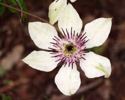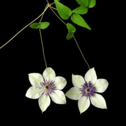 てっせん(鉄線)は、キンポウゲ科センニンソウ属のツル性多年草で、中国が原産です。似ているものに、日本原産のカザグルマがあり、それらの品種を交配して誕生したのが「クレマチス」です。てっせんは「鉄線」、または「鉄線花」と書き、俳句では夏の季語になっています。花の季節は5月〜6月で、花の色は、白、淡青紫が代表的です。花言葉は、「しばりつける」「高潔」などです。