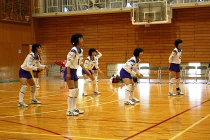 そして決選の第3セットです。烏丸中は第2セットの流れをそのまま引き継いで、順調に点数を重ねます。そして相手チームにミスが目立ち始め、得点を広げます。サーブ・フェイント・スパイクと調子が出てきて、ついにマッチポイント!25−16で熱戦を締めくくりました。少し厳しい試合でしたが、チームワークで見事勝利!おめでとう!