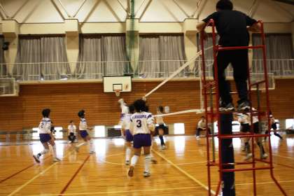 次の対戦は大原野中学校です。午前の試合で、四条中学校に勝利して勢いがあります。第1セットはやや出だしに躓き、相手の先行を許します。ボールの判定で微妙な場面がいくつかあり、なかなかペースに乗りきれません。そして逆転できないまま、残念ながら16−25でセットを落としてしまいました。