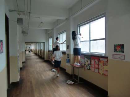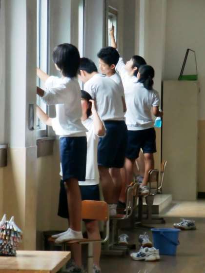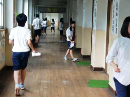 全校一斉美化活動の様子・・・廊下の窓ふき 公開日 2012/08/29 更新日 2012/08/29 学校の様子 廊下の窓ガラスは、土埃のため汚れがこびりついています。この機会に、ガラスクリーナーを使ってごしごしとこすりました。すっきりとしたピカピカの窓ガラスは気持ちのいいものです。