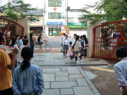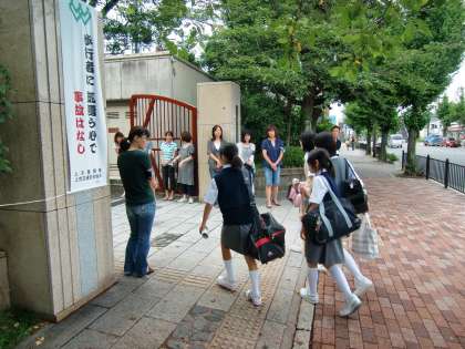 今日9月6日(木)の朝8時過ぎから、PTA校外補導委員会の2回目の「朝の声かけ運動」を実施しました。登校してきた生徒たちは、校門におられる保護者の皆さんや先生方の姿にやや緊張でしたが、「おはようございま〜す」と元気に挨拶をしていました。校門の前を通り過ぎる地域の方、出勤途中の方も、にこやかに挨拶をしていただきました。室町小学校の子どもたちの挨拶が可愛かったですね。参加いただいた皆さんには、早朝から本当にありがとうございました。さすがに今日は、生徒たちの登校時間が少し早くなったように思います。いつもこうだといいですね。