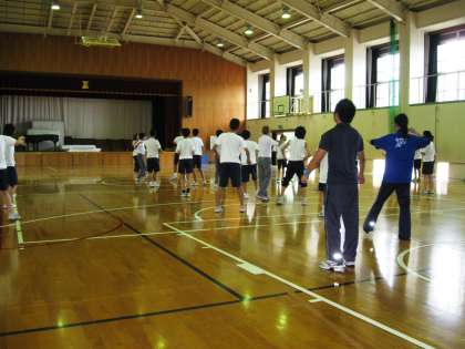 2年生が19日の文化祭に披露する”京炎 そでふれ!”の練習が連日行われています。踊りを指導していただいている「志舞踊」の皆さんは、京都学生祭典から生まれた「京炎そでふれ!」サークルで、同志社大学を中心に、同女(田辺)、大谷、京都工繊、大薬といった大学の学生で活動されています。今年も練習の合間を縫って、烏丸中の生徒の皆さんを指導していただいています。