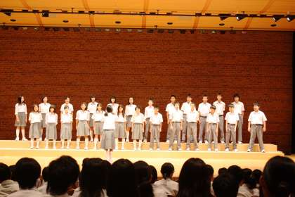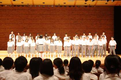 次にクラスごとの発表です。選択曲として、2組は「未来へのステップ」、1・4組は「Let's Search For Tomorrow」です。中学校生活初の合唱コンクールで初々しさを感じましたが、クラスの団結を見せてくれました。
