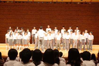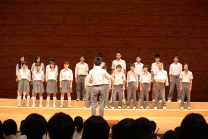 文化祭1日目−4(2年合唱コンクール) 公開日 2012/09/19 更新日 2012/09/19 学校の様子 続いて2年生の部です。学年合唱は「時の旅人」です。合唱曲では定番でよく聞きますが、テンポが変化する部分が難しいですね。女子の数が少ない中、バランスのよい、きれいな歌声でした。 クラス対抗では、2組が「COSMOS」、1組が「明日へ」を歌い上げました。人数の少ない女子が頑張り、男子も負けずに声を出し、とてもきれいに歌声が響いていました。
