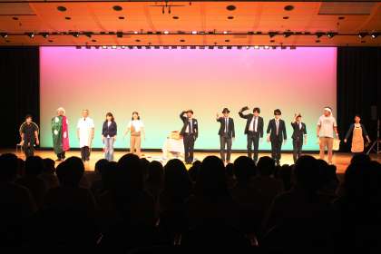 文化祭の”おおトリ”を飾るのは、恒例の職員劇です。今年は「時間どろぼう 2012」です。部活動や文化祭準備が終わってからの夜に、こつこつと練習をしてきた成果を発表しました。ストーリーは?セリフは?動きは?などどいう細かいことは抜きにして、個性的な役者が勢ぞろいで、吉本新喜劇並みのズッコケやギャグ、アドリブの嵐で、客席は大いに盛り上がりました。「時間は大切に使いましょう!」その通りですね。