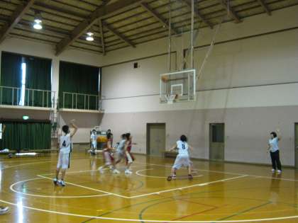 男子バスケットボール部。最後までねばる! 公開日 2012/09/24 更新日 2012/09/24 部活動 烏丸中学校チームは先週末の秋季大会(新人戦)で嘉楽中学校と対戦しました。前半はほぼ互角に戦いましたが、全部員6名しかいないため選手交代ができず、後半は相手校のスピードでおされ、じょじょに点数がひらき残念ながら67対42で敗れてしまいました。次の大会では、今以上に体力をつけがんばってくれることと思います。大いに期待しましょう。