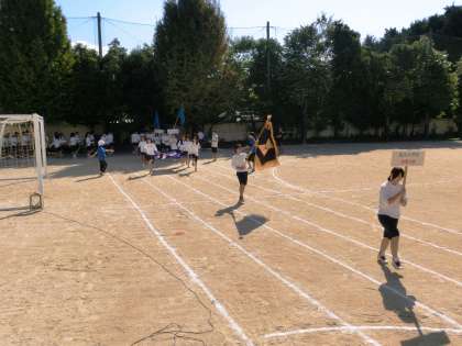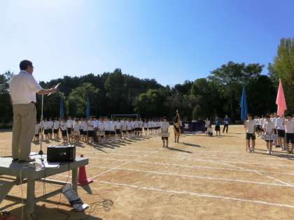 体育祭予行練習実施中! 公開日 2012/09/27 更新日 2012/09/27 学校の様子 夏が戻ったのかと感じる強い日差しの下、体育祭の予行練習が始まりました。入場行進、開会式、生徒会旗掲揚、選手宣誓、準備運動・・・と一連の練習ののち、各学年ごとの競技を練習しています。当日はもっと元気に、もっと盛り上がりましょう!