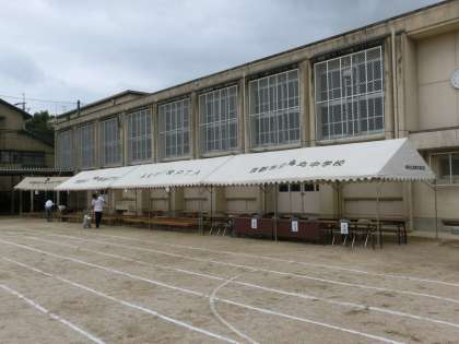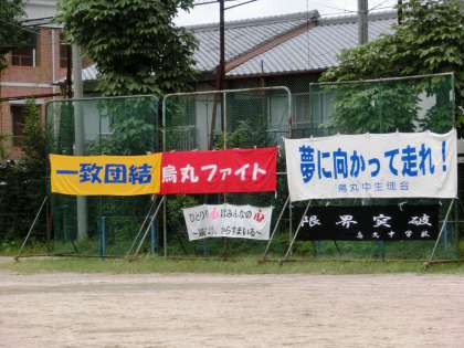 準備完了!明日を待つばかり・・・! 公開日 2012/10/01 更新日 2012/10/01 学校の様子 午後に行われた前日準備は、生徒の皆さんがてきぱきと動いてくれたこともあり、予定よりも早く終わりました。整備され、ラインが引かれたグランドには、テントが張られ、激励の横断幕が揺れています。後は明日の朝に生徒用のいすが並べば完成です。校門には、体育祭のアーチの設置が完了しました!時々霧のような雨がパラパラと降っていますが、天気予報では明日は”晴れ”!体育祭日和になることを期待しています。