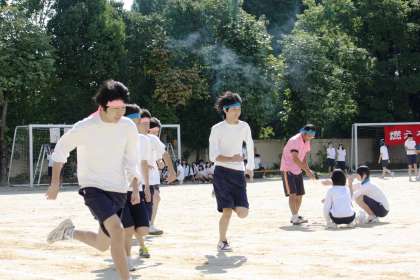 体育祭−2(男子100m走) 公開日 2012/10/02 更新日 2012/10/02 学校の様子 最初の競技は、全学年男子の100m走です。それぞれが全力を出し切って、ゴールを目指します。あと一歩で・・・!