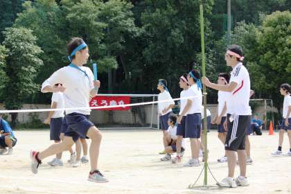 午前の部の最後は、クラス対抗男子リレーです。ここが勝負の決戦の場、最後まで息の抜けない競争でした。いい顔してますね!