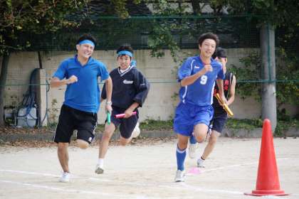 男子の部は、サッカー部、バスケットボール部、野球部、美術部に、最強先生チームを加えた5チームで争いました。これまた接戦の中、先生チームが一歩リードしていましたが、最後はさすがのサッカー部がリードを奪い、激戦を制しました。2位は野球部、先生チームは3位、4位はバスケットボール部、最後は美術部でした。