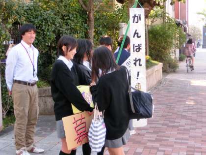 初日の22日は、生徒会役員選挙の選挙活動と同時並行で義援活動を行いました。学校の前を通る方はそんなに多くはありませんが、多くの生徒や保護者の皆さんから義援金をいただきました。募金額を競うのではなく、募金していただいた一人ひとりの気持ち(1Peace)を受け取り、”300Peace”を目標に義援活動を進めていきたいと思います。また、11月4日の「室町ふれあい広場」でも義援活動を行う予定です。多くの皆様のご協力をお願いいたします。