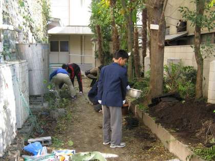 球根の植替えをしました! 公開日 2012/11/19 更新日 2012/11/19 からすま花暦 きょう19日の昼休みに美化委員会の生徒たちが、学校ボランティアの田中さんにご指導いただき、春に咲くチューリップなどの球根を植替えました。寒い中で作業はたいへんでしたが、みんなで一生懸命に作業しました。きっと春には美しく咲いてくれることでしょう。美化委員会のみなさん、ご苦労様でした。田中さん、ありがとうございました。