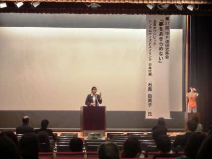 講演は、2008年に開催された北京オリンピックのシンクロナイズドスイミング日本代表の石黒由美子さんによる「夢をあきらめない」というお話でした。