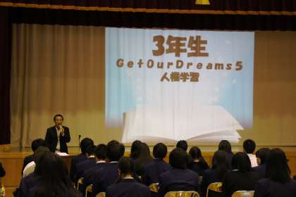 3年生は、3年間の人権学習の総まとめです。下の12種類の内容から各自が一つテーマを選び、さらに関連する具体的なテーマを設定し、それについて調べた報告書をもとに、理解したことと”自分宣言”を1分間で発表しました。2時間ぶっ続けの発表会でしたが、全員が緊張感をもって発表し、友人の発表にもしっかりと耳を傾けていました。お疲れ様でした。