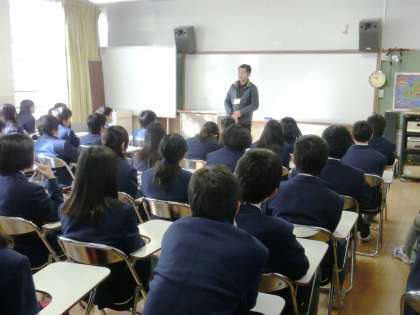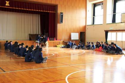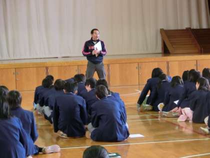 2年生は昨日の4時間目に体育館で集会をしました。今回は、クラスの団結を深め、学年が一つにまとまるようにと、生徒の司会でクラス対抗「伝言ゲーム」を行いました。人に物事を正確に使えるのは、大切なことですが、きちんと出来ていないこともあります。「○◎さんから聞いたんやけど・・・」と友人や家族の人に話したことはありませんか?”うわさ”というのはとても怖いものです。その人の心を傷つけることもあります。情報は正確に聞き、自分の中で整理し、真偽を確かめたうえで他人に伝える。当たり前のことですが、もう一度心に刻んでほしいと思います。