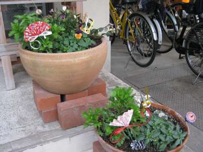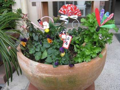 12月26日の夕方、玄関の両脇にある鉢植えたちに迎春準備の飾りつけをしました。地域のボランティアの方に飾りつけ用の小物を用意していただき、とてもかわいらしい飾りつけが完成しました。学校の近くにお出でのときは、ぜひ、ご覧下さい。もうすぐ正月を迎えるあわただしい時期となりましたが、烏丸中学校教職員一同、新年も生徒と保護者ならびに地域の皆様にとって、幸多き年となることを祈念しつつ、今年のホームページの更新を終えさせていただきたいと思います。いつもホームページをご覧いただき、ありがとうございました。良いお年を!