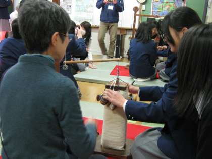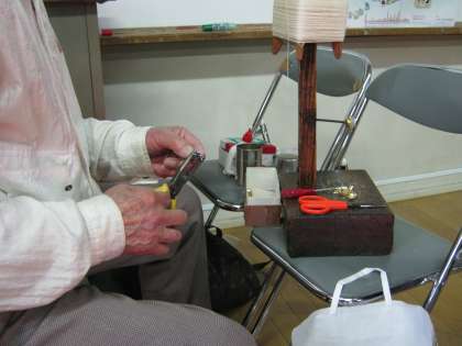 うまく作れるかな・・・ 公開日 2013/01/24 更新日 2013/01/24 学校の様子 始めはワクワク・ドキドキでぎこちなかった生徒たちも、丁寧に優しく手ほどきしていただくなかで、がんばって取り組むことができ、世界で1つだけの「オリジナル組紐キーホルダー」を手に入れることができました。きょう制作した作品を、お宝としてずーっと大切に使っていってほしいと思います。身近でありながら、なかなかふれることのできない伝統工芸品制作を体験させていただいた西陣織工業組合の皆様、ありがとうございました。