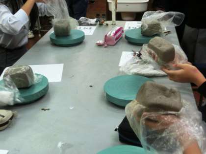 いよいよ制作スタート!慣れた手つきで・・・ 公開日 2013/02/06 更新日 2013/02/06 学校の様子 西陣中央小学校を卒業した生徒は、小学校時代にも茶器づくりを経験しています。また11月には美術の授業で、”板(たたら)”で「花器」の制作を体験しています。そんなこともあり、多くの生徒は慣れた手つきで見事に茶器の形を創っていきました。でも中には、思い通りにうまくできない人もいましたね・・・完成が楽しみです!