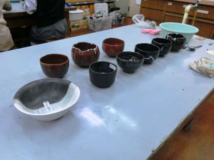 出来上がった作品は、これから数週間をかけて乾燥し、上薬をかけて本焼きをします。完成までには少し時間がかかりますが、完成品を手にできる日を楽しみに待ちましょう。2年生には和菓子作り体験も実施します。完成した自分の茶器で、自分の作ったお菓子と共にお抹茶をいただければ素晴らしいですね。保護者や地域の皆様にも披露できればと思います。