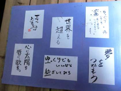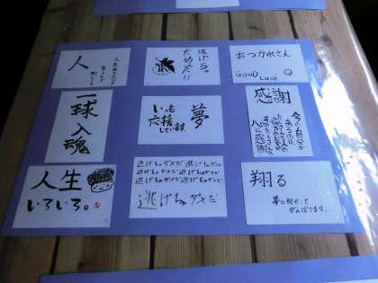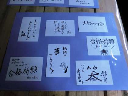 受験へ向けて”しんどい”けれど、決して”あきらめず”に、それぞれが”合格”へ向けて頑張り、自分の”夢”を叶えよう!そして周りの多くの方々に”感謝”の気持ちを持ち、64名全員が”笑顔”で卒業しよう!・・・そんな思いが感じ取れる温かい作品たちですね。全てを紹介できませんでしたが、1・2年生の人も是非保健室前の廊下へ行って、鑑賞してくださいね!
