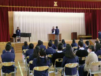3年生は、昨日から卒業式の練習が始まりました。昨日と今日の1時間目は、主に歌の練習をしました。卒業式では5曲の歌を歌います。卒業式という大舞台で、自分たちの思いを伝えるためにも、大きい声で、元気よく、そして心をこめて歌ってください。