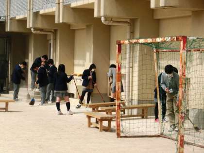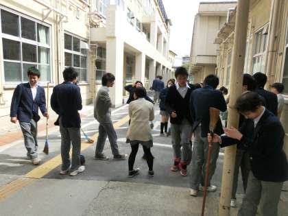 卒業前に、3年間お世話になった学校を少しでも美しくするため、3年生は4時間目に美化活動をしてくれました。今日は校舎外を中心に、校門付近、校舎の裏、体育館周辺、北門付近、グランドのトイレ、南校舎南側、校舎の間などをはき掃除し、ゴミを拾ってくれました。