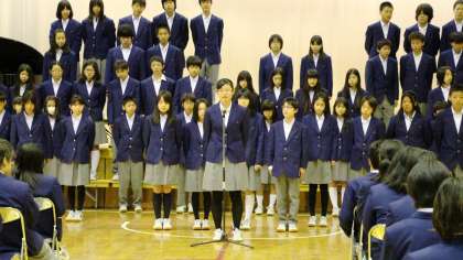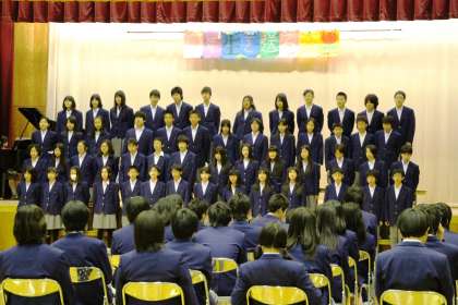 その次は、1年生全員の学年合唱です。曲はGReeeeNの「遥か」です。旅立つ3年生にとっては、今の自分の思いとマッチする歌詞でした。全員が思いを込めて一生懸命に歌ってくれました。