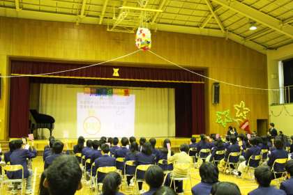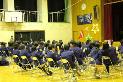 3年生を送る会・・・思い出クイズ大会と学校生活ビデオ! 公開日 2013/03/13 更新日 2013/03/13 学校の様子 次は「3年生の思い出クイズ大会」です。3年生の人しか知らない出来事や行事についての”マニアック”なクイズです。1・2年生には???でしたが、懐かしい思い出をよみがえらせる9つのクイズでした。 そして学校生活のビデオ上映です。入学式の本当に幼く、あどけない顔が可愛かったですね。3年間で本当に大きく成長しましたね。思い出に浸ったひと時でした。
