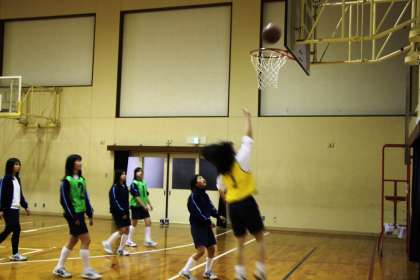 1年生は、クラス対抗バスケットボール大会です。男女に分かれて、バスケットボールで汗を流しました。楽しく競技をしていましたが、なかなか点が入りませんネ・・・