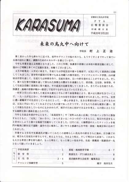 平成24年度のPTA活動のまとめでもある「KARASUMA(3月12日号)」を発行し、生徒を通じて各ご家庭に配布しました。