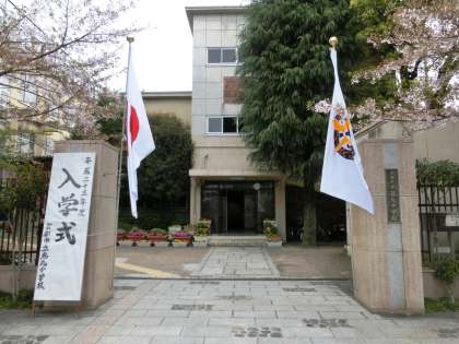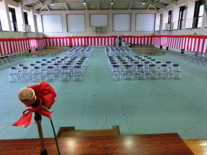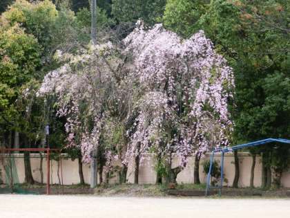 いよいよ入学式当日の朝を迎えました。曇り空ですが、温かくて風もなく、絶好の式日和です。校庭の紅しだれ桜も満開です。あと1時間後に登場する新入生を迎える準備はすべて整っています。今日の主役の登場を待っています!