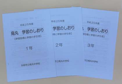 また家庭訪問の際に、各学年の「烏丸 学習のしおり—学習目標と学習の手引き—」を配布させていただきますので、お子さまと一緒にご覧いただき、今後の学習の参考にしていただければと思います。宜しくお願いいたします。