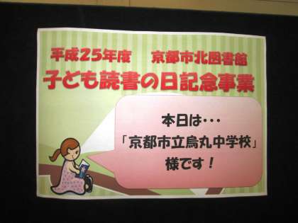 4月20日(土)に、京都市図書館主催「子ども読書の日記念事業」に参加してきました。参加したのは、放送部と昨年度後期の図書委員会プラス有志の計8名です。図書委員会は、昨年度文化祭で発表した、アンパンマンの作者、やなせたかしの「やさしいライオン」の読み聞かせです。紙芝居になっている絵は、昨年度図書委員会生徒が作りました。放送部は、エプロンシアターです。本当は一人でやるのですが、今回は読み手と演技をわけて行いました。当日、急遽一人来られなくなるというハプニングもありましたが、なんとか頑張りました。