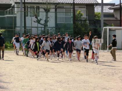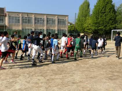 4月29日(祝)午前9時50分から、西京極総合運動公園で開催される「第55回京都市中学校春季体育大会開会式」に参加する53名(部活代表51名+生徒会代表2名)による行進練習を放課後に行いました。参加した生徒の皆さんは、指揮の木村先生の指示をしっかりと聞き、元気に胸を張って、グランドを行進しました。短い時間でしたが、注意点はしっかりと出来ていたと思います。