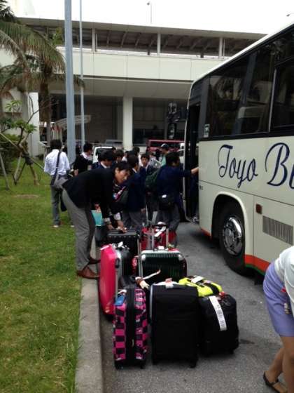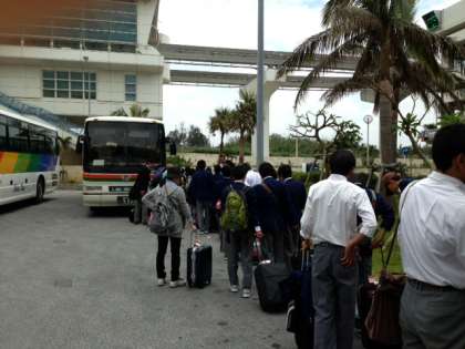 修学旅行一日目 さあ、美ら海水族館へ向けて出発です。薄曇りで蒸し暑く感じます。