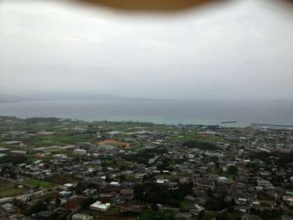 伊江島紹介-3 公開日 2013/05/10 更新日 2013/05/10 3年修学旅行 修学旅行二日目 伊江島のシンボル、城山からの一望です。天気が良ければ、大絶景なのに... 12時20分には、港に集合です。