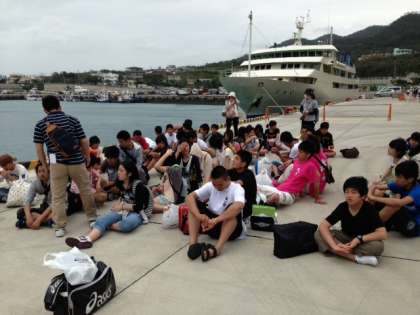 修学旅行二日目 フェリーは予定通り本部港に到着しました。これからマリン体験のスタートです。