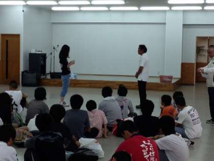 ホテルに到着しました! 公開日 2013/05/10 更新日 2013/05/10 3年修学旅行 修学旅行二日目 マリン体験を終え、今晩泊まる「しまんちゅうクラブ」に到着しました。海で楽しく過ごした時間が長かったので、ちょっと疲れ気味の人がいるようです。休憩の後、夕食はバーベキューです。お腹もペコペコで、待ち遠しいな!