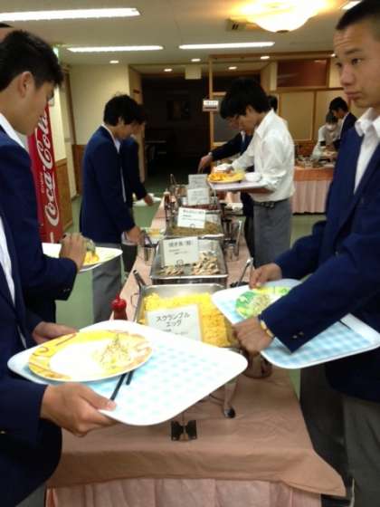 朝食はバイキング! 公開日 2013/05/11 更新日 2013/05/11 3年修学旅行 修学旅行三日目 全員で食べる最後の食事は、ホテルのバイキングです。これからの活動に備えて、バランスよく、適量を食べてください。いただきます。