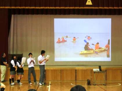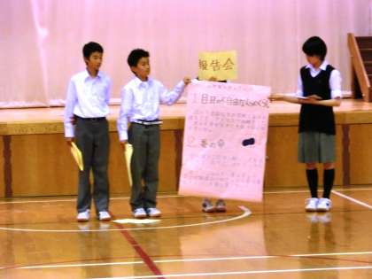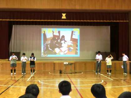 3年生は9日〜11日の2泊3日の修学旅行です。楽しく、思い出に残る3日間を、スライドを交えて報告してくれました。