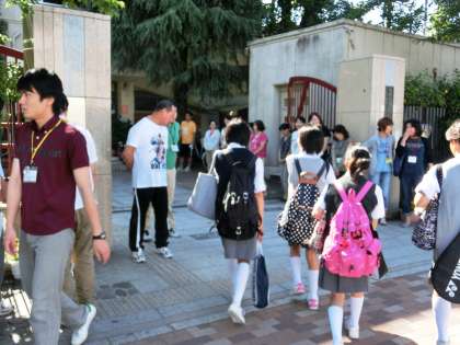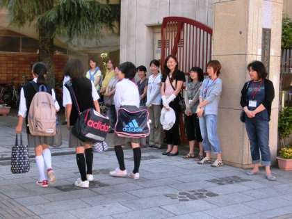 今日は今年度1回目の「PTA朝の声かけ運動」がありました。校門には8時前より多くの保護者の皆さんが来校され、生徒たちに爽やかな1日のスタートをきってもらおうと「おはよう!」の声をかけていただきました。登校した生徒たちは、保護者の方の人数の多さに少し戸惑いつつも、「おはようございます!」と元気に返していました。