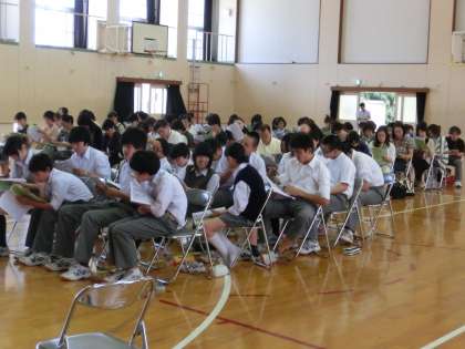 昨日の「第1回線路説明会」に多くの保護者の皆様にご来校いただき、ありがとうございました。今年度の公立高等学校の入学選抜制度の変更を中心に、3年生と一緒に説明を聞いていただきました。生徒たちにとっては、進路は自分自身が切り拓いていかねばならない課題であるのは当然ですが、それを保護者の皆様が温かく支えていただいているのだということを自覚し、自分に合った、自分が望む進路を決定して欲しいと思います。