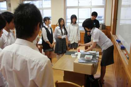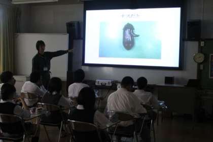 京都芸術高校からは、金箔を使った日本画の授業で、みんなも実際に金箔を使った作品に取り組みました。桂高校からは、普段何気なくスーパーで買っている野菜のおいしさの見分け方や、遺伝子組み換え技術などについて授業をして頂きました。