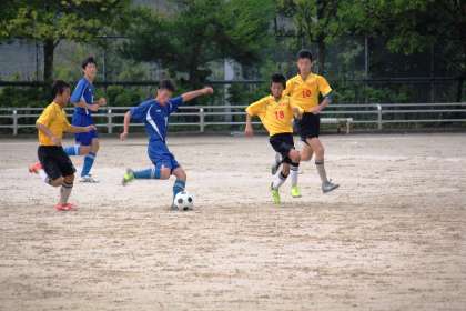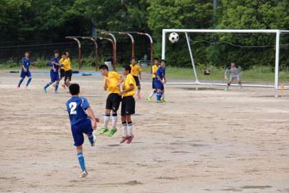 サッカー部は、14日(日)午前9時より、大枝中学校会場で宿敵大枝中学校と対戦しました。春季大会でも同じ大枝中学校と対戦し、0−4で敗れています。今回はいわば”リベンジ”です。