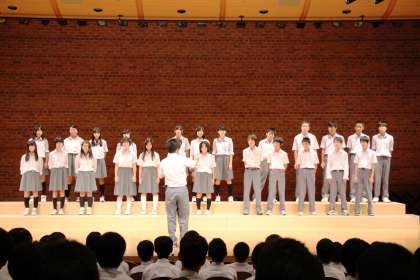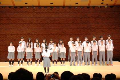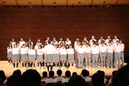 文化祭1日目〜合唱コンクール−<2年生の部> 公開日 2013/09/11 更新日 2013/09/11 学校の様子 続いて2年生の部です。学年合唱は「COSMOS」です。雄大なメロディーの曲ですが、全員元気に歌ってくれました。そして、2年2組は「明日へ」、2ねん1・3組は「今日は君のBirthday」を合唱しました。男子がちょっぴり元気なかったようでしたが、クラスのまとまりを見せてくれていました。