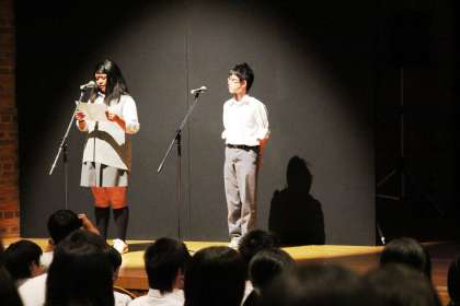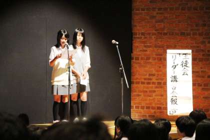 文化祭2日目〜「リーダー講習会報告」 公開日 2013/09/12 更新日 2013/09/12 学校の様子 舞台発表の2日目は「リーダー講習会報告」からスタートです。夏休み中の7月30日に実施された内容をまとめ、参加者に発表してもらいました。これから烏丸中をもっともっと良くするために、生徒会を今よりも盛り上げていきましょう!