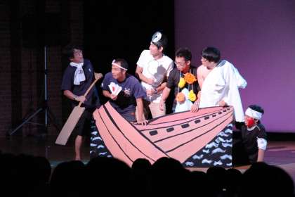 軽業師のそうべえは、誤って落下し、地獄へと送られますが、そこで出会った愉快な仲間と共に、次々と現れる熱湯地獄、針の山などの地獄の試練に耐え抜き、ついには生き返るという物語です。先生方が”意外な?”役を演じました。あの鬼は誰?拍手喝采の楽しい劇でした。