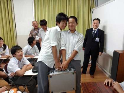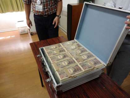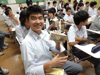 お話の冒頭、ジュラルミンのケースが登場…「1億円が入っています。持ってくれる人はいませんか?」、子どもたちの目の色が変わりました。一人一人1千万円の札束を手に取り、お金の重さについて実感した後、アニメ啓発DVD「アナザーワールド」で税金を徴収しない世界を視聴しました。「やっぱり納税の義務は、大切なもの」と子どもたちも感想を述べていました。後半は、岩崎先生から、日本の税金についてのレクチャーを受けました。ここでも、「もしも公立中学校の授業料を払うことになったら、毎月いくら払うと思う?」という興味をそそる質問があり、「約8万円」という金額に、話を聞いていた人はビックリしました。最後に国や地方公共団体の借金にあたる「公債」を減らすことが課題である、と話をしめくくられて租税教室を終了しました。2年生のときのファイナンスパーク学習での経験や、社会科での学習だけではわからなかったところが少しわかった1時間でした。