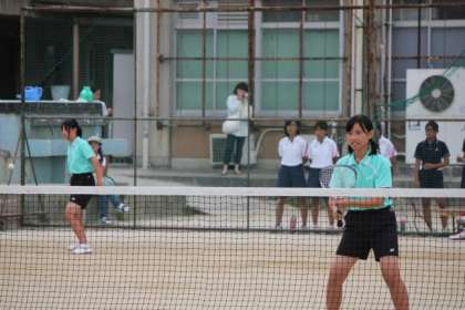 1,2年生共に、昨年度の試合や今年度の団体戦に出たメンバーもあり、予選突破が大いに期待されました。1年生はベスト8が全市大会出場条件で、その中で1回戦突破が2ペア(シードによる不戦勝)で、2回戦も1ペアがゲームカウント3−2で突破、ベスト16入りしました。いよいよ8をかけた戦いとなりましたが、残念ながら惜敗、全市出場は果たせませんでした。